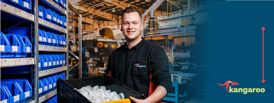 De kern is een lean-aanpak (constant optimaliseren van de efficiëntie van de processen en van de waarde voor de klant) gecombineerd met het bekende two-bin principe. Een bakje raakt leeg en verdwijnt in een grote ‘supply box’. Op elk bakje zit een chip die de voorraadstatus direct doorgeeft. Dat is de bestellings-trigger; de lege bak kan niet terug de vloer op. “Het is de snelste en goedkoopste manier om bestellingen af te vuren”, aldus Kunst. Eén tot meerdere keren per week levert Kangaroo gevulde bakken terug, gekoppeld aan product en locatie. De chauffeur komt er geregeld en kent de werkvloer goed.